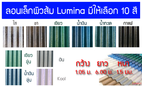 นวัตกรรมใหม่จาก Lumina เหมาะสำหรับรับแสงสว่างจากภายนอกอาคาร มีน้ำหนักเบา แข็งแกร่งทนทาน ติดตั้งง่าย สะดวกรวดเร็ว  ผลิตจาก Polycarbonate วัตถุดิบเกรด A ที่ได้มาตรฐานป้องกันแสง UV มีความโปร่งใส ช่วยให้ประหยัดพลังงานไฟฟ้าด้านแสงสว่าง เหนียวแน่นทนทาน แข็งแรงไม่แตกง่าย เนื่องจากมีความยืดหยุ่น มีอายุการใช้งานยาวนานถึง 10 ปี